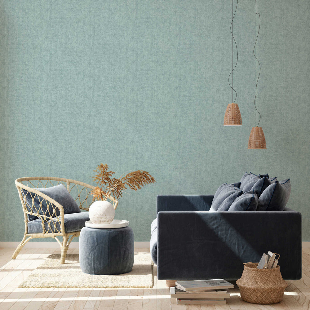 Vienkrāsainas flizelīna tapetes ar lina tekstūru: zaļā krāsā, 389026 AS Creation