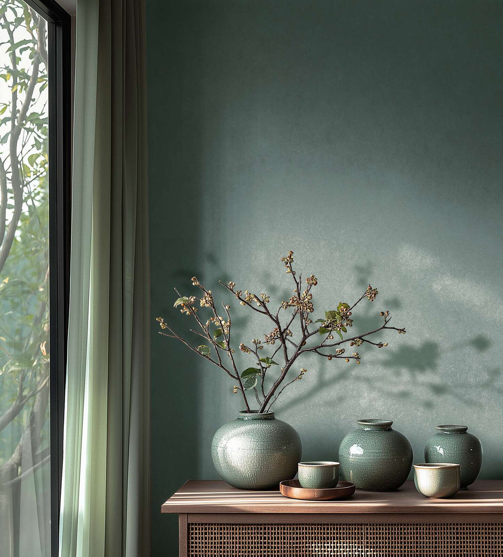 Wallpaper with fine texture, slightly glossy - blue-green - 2767701