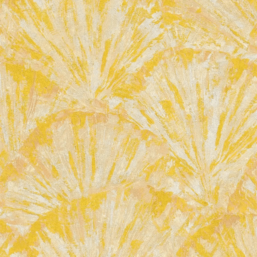 Tapetes ar smalku tekstūru, kas atgādina lapas, dzeltenā krāsā, 781984 AS Creation