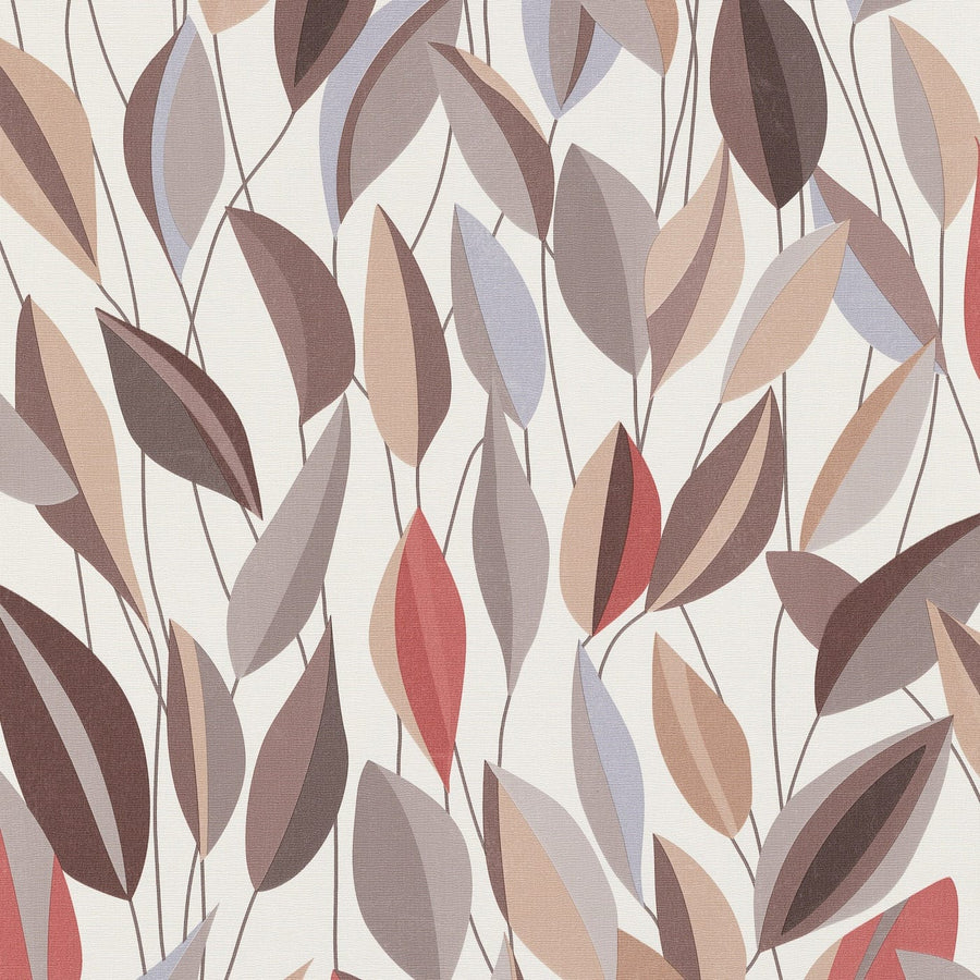 Wallpaper with stylised leaves (beige, grey, brown) - 3765247