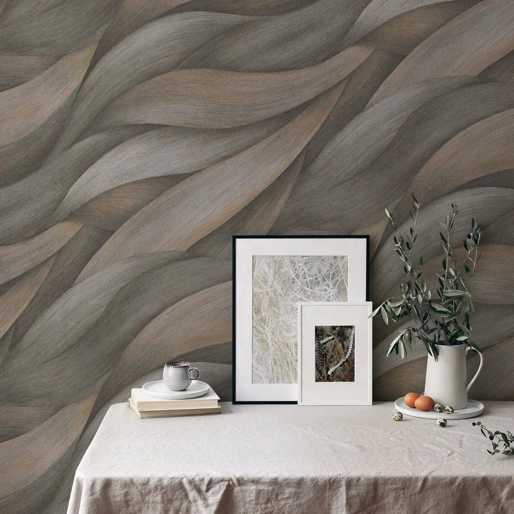 Brūnas viļņveida tapetes siltam un mājīgam interjeram   Tapetenshop.lv