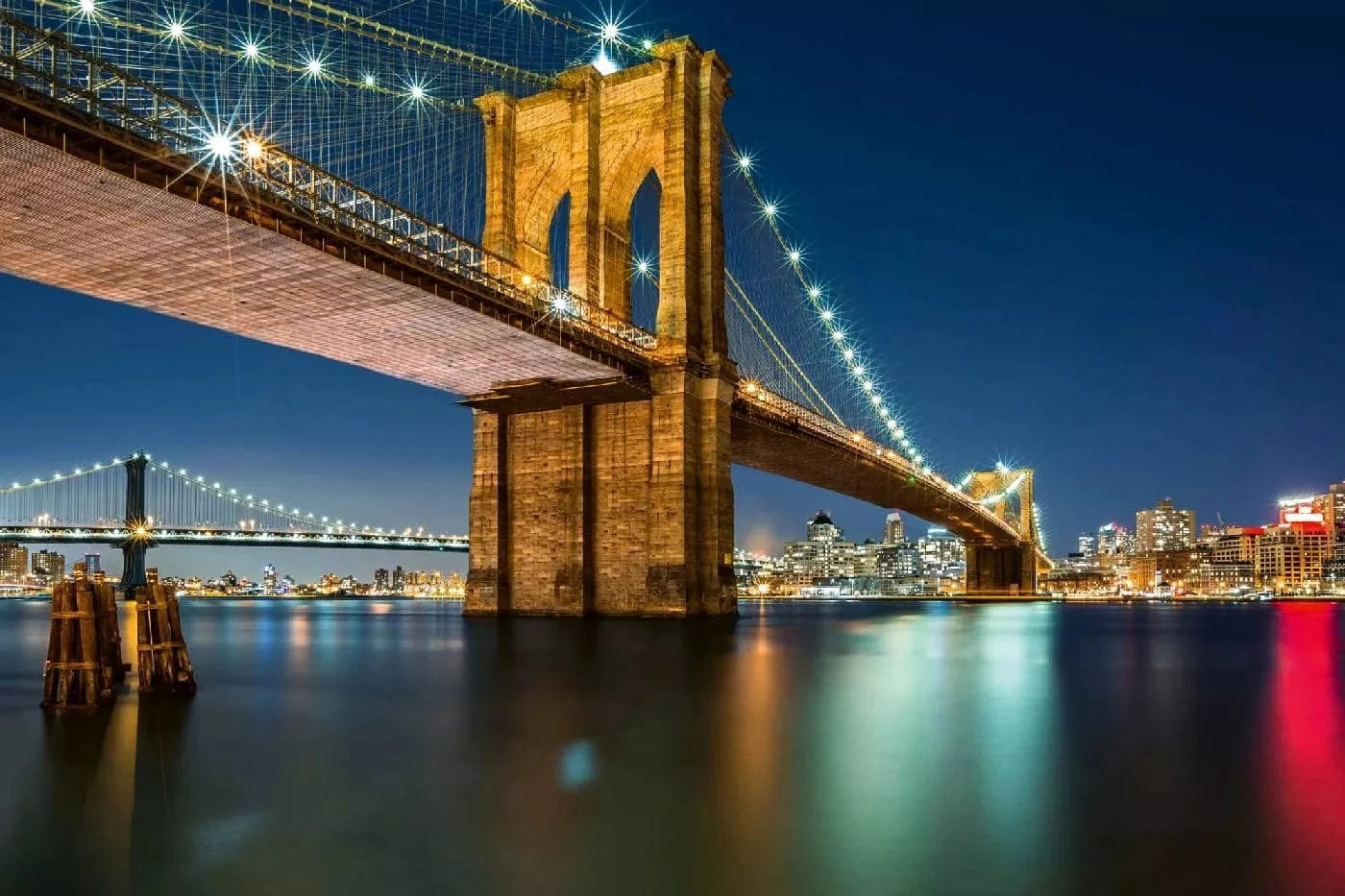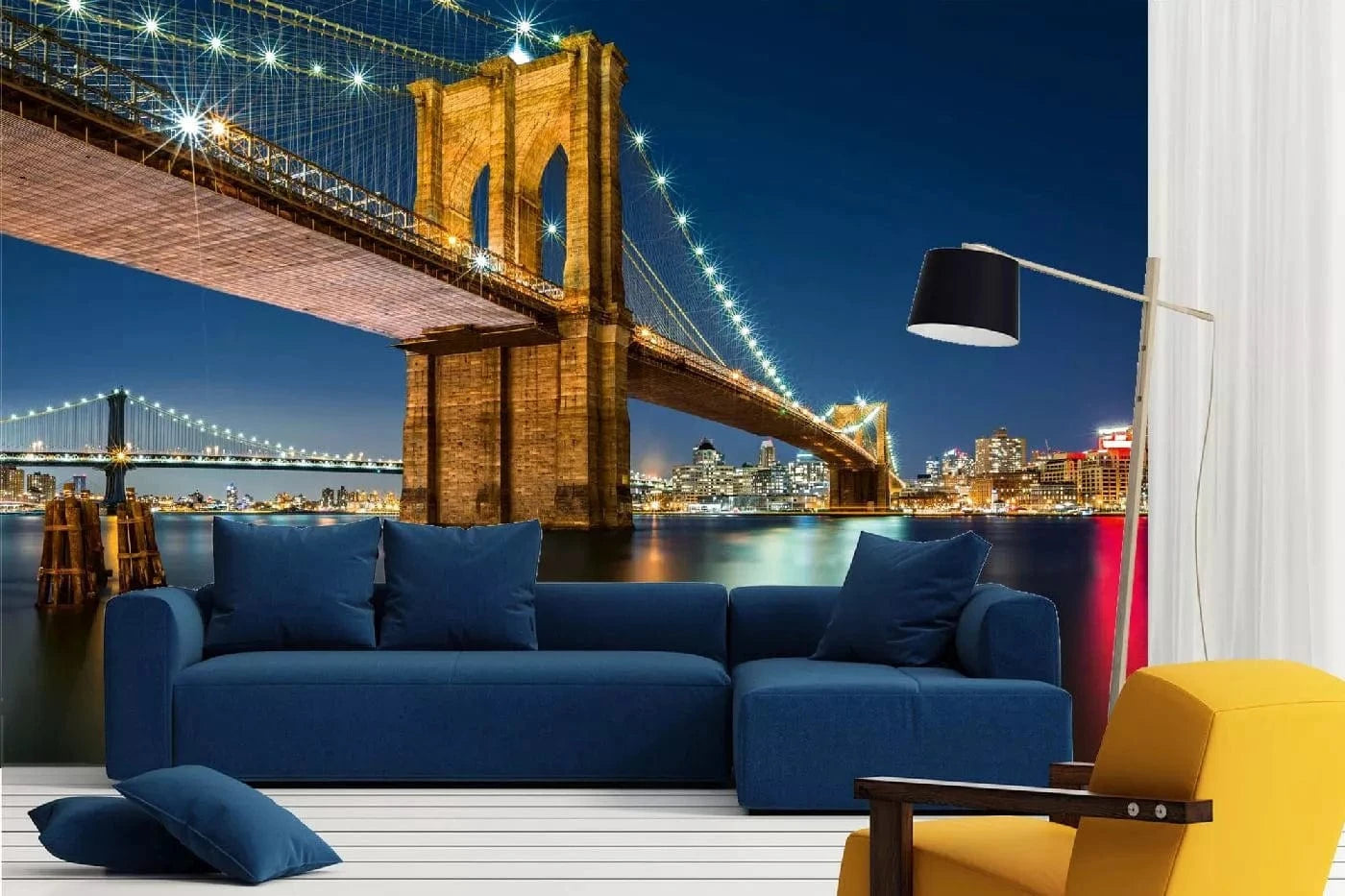 Wall Murals with theme of USA - Brooklyn Bridge with view from Manhattan, 375x250 cm