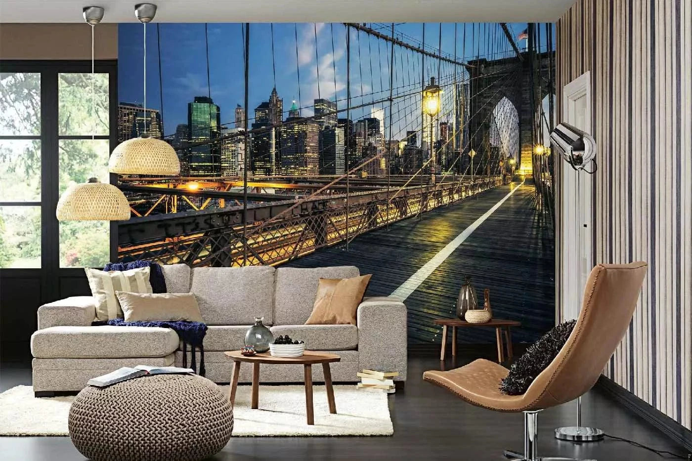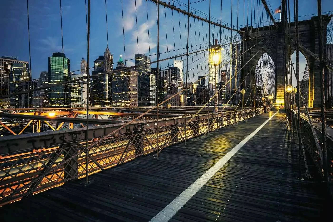 Wall Murals with theme of USA - Brooklyn Bridge at night, 375x250 cm