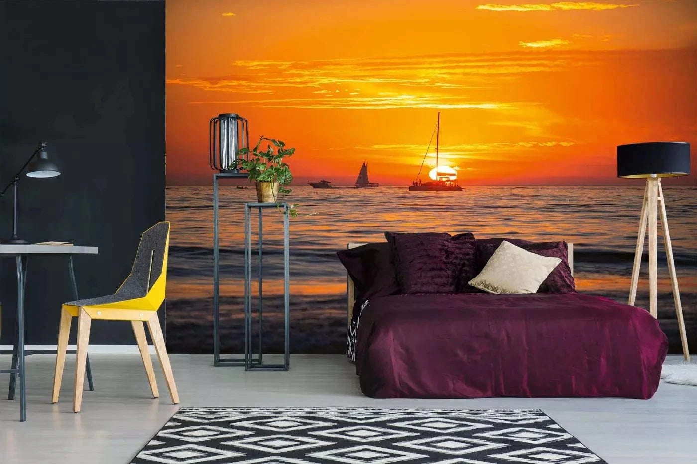 Wall Murals with sea view - Sunset over the sea, 375x250 cm