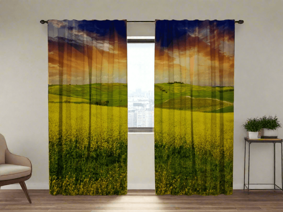Aizkari viesistabai un guļamistabai ar skaistu dabas skatu - Saullēkts Tapetenshop.lv