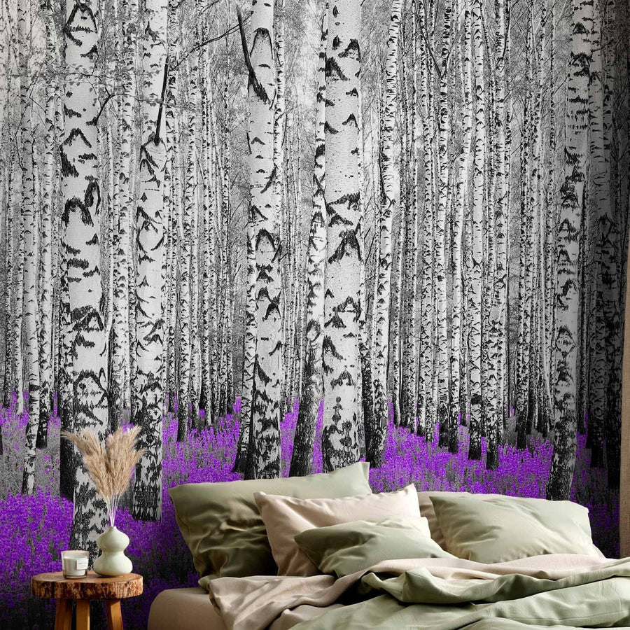 Wall Murals with birches - abstract forest landscape - purple forest, 60531