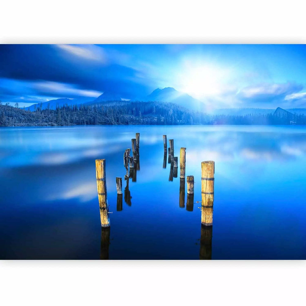 Fototapetes - ainava ar ezeru, mežu un kalniem saules gaismā, 59736  G-ART
