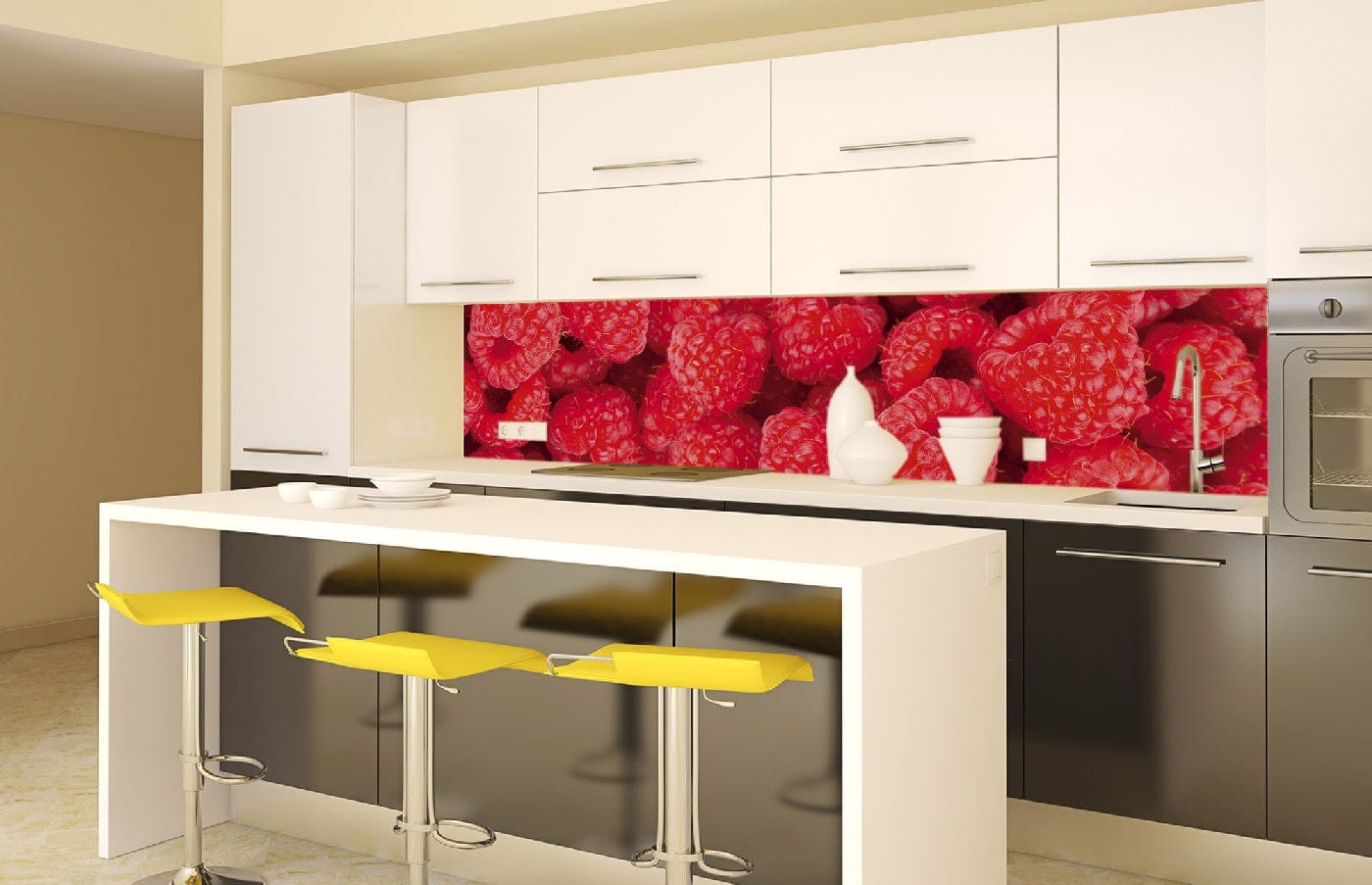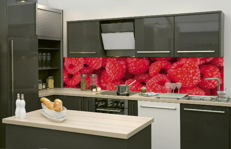 Wall Murals for kitchen with lamination, self -adhesive film and flizeline - raspberries (260x60 cm)