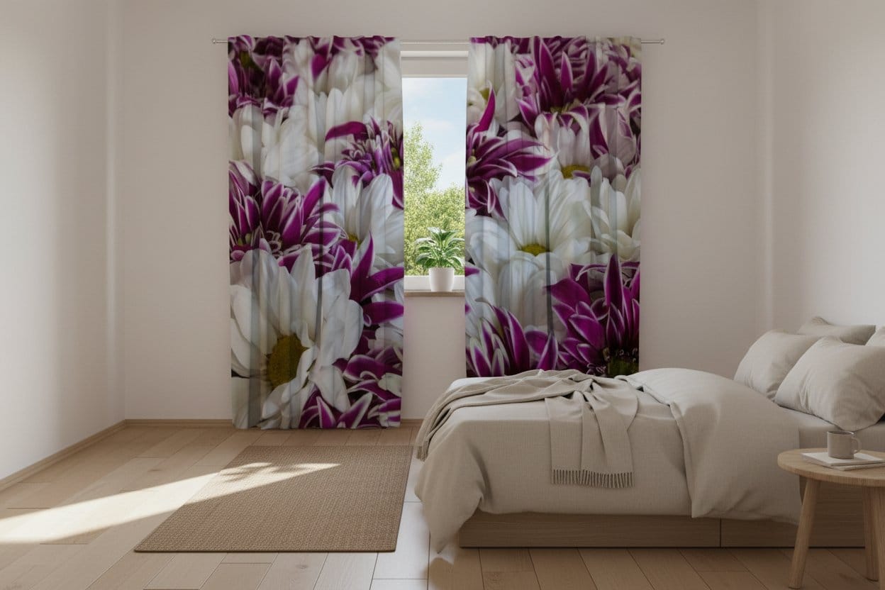 Curtains with flowers - Autumn chrysanthemums