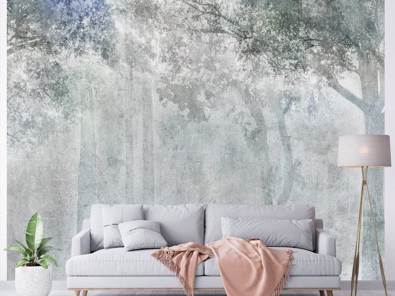 Wall Murals with forest in shades of light grey and green - 131902
