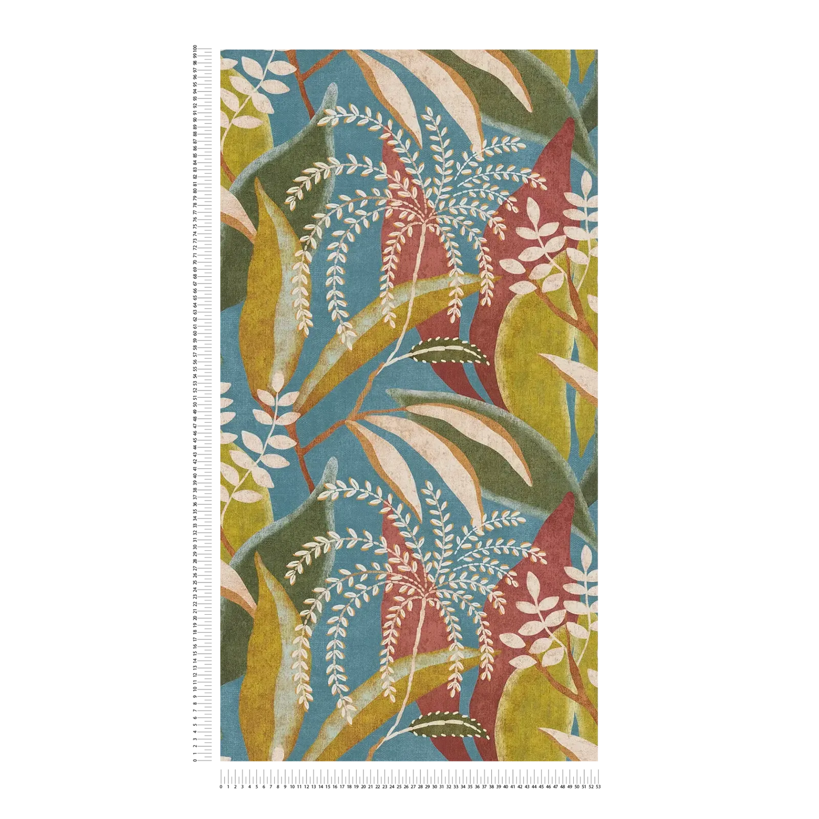 Wallpaper with exotic plant motifs, matte finish and fine texture | blue, red, green - 3012467