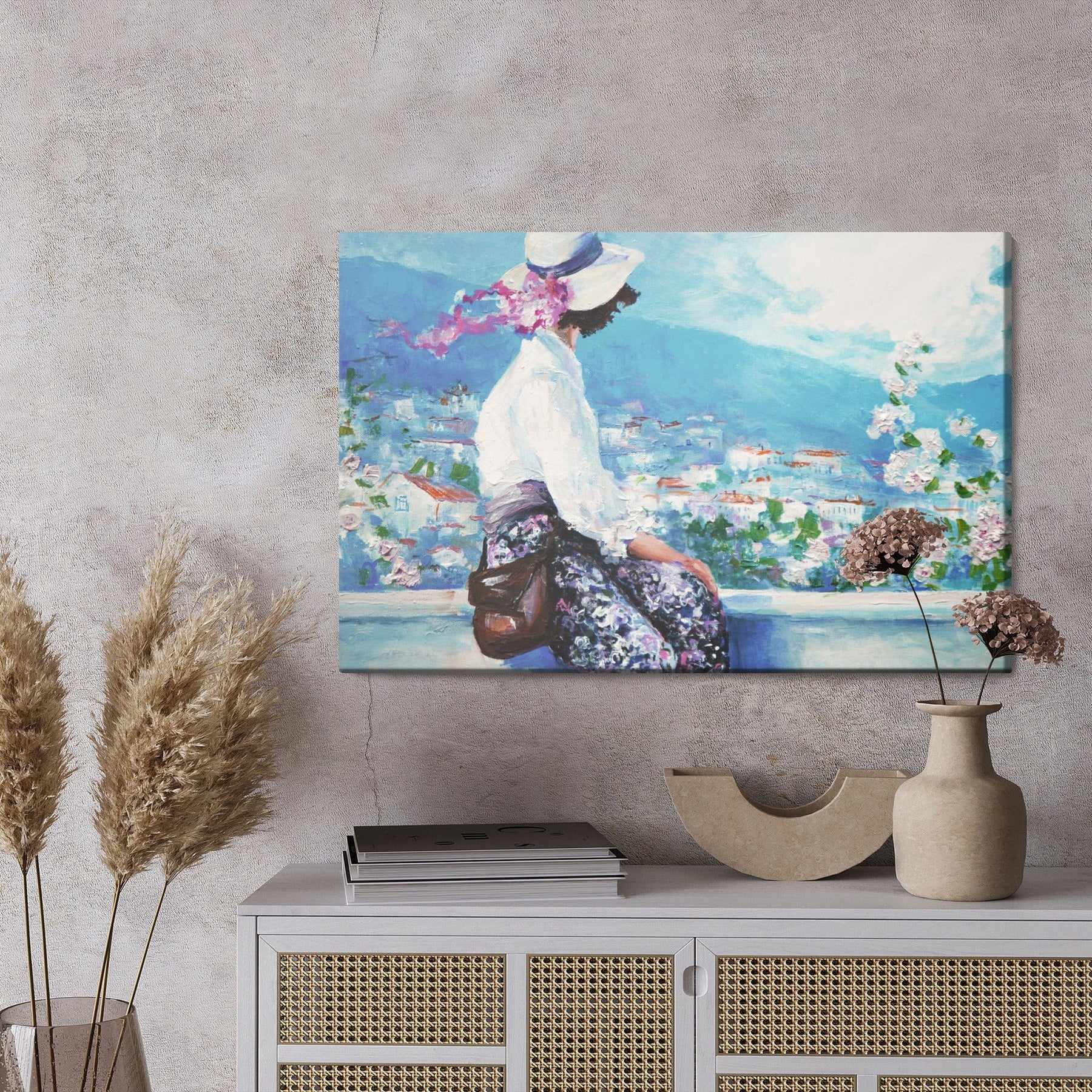 Canvas print - Woman against a landscape background, N-912