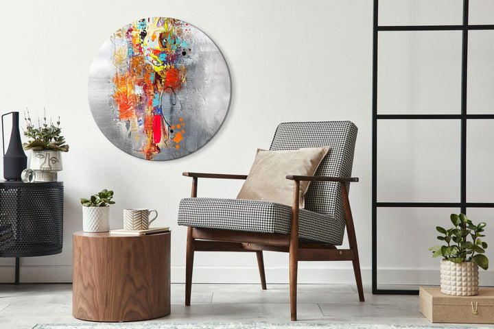 Round canva (Deluxe) - the richness of color, abstract live colors on a gray background, 148759