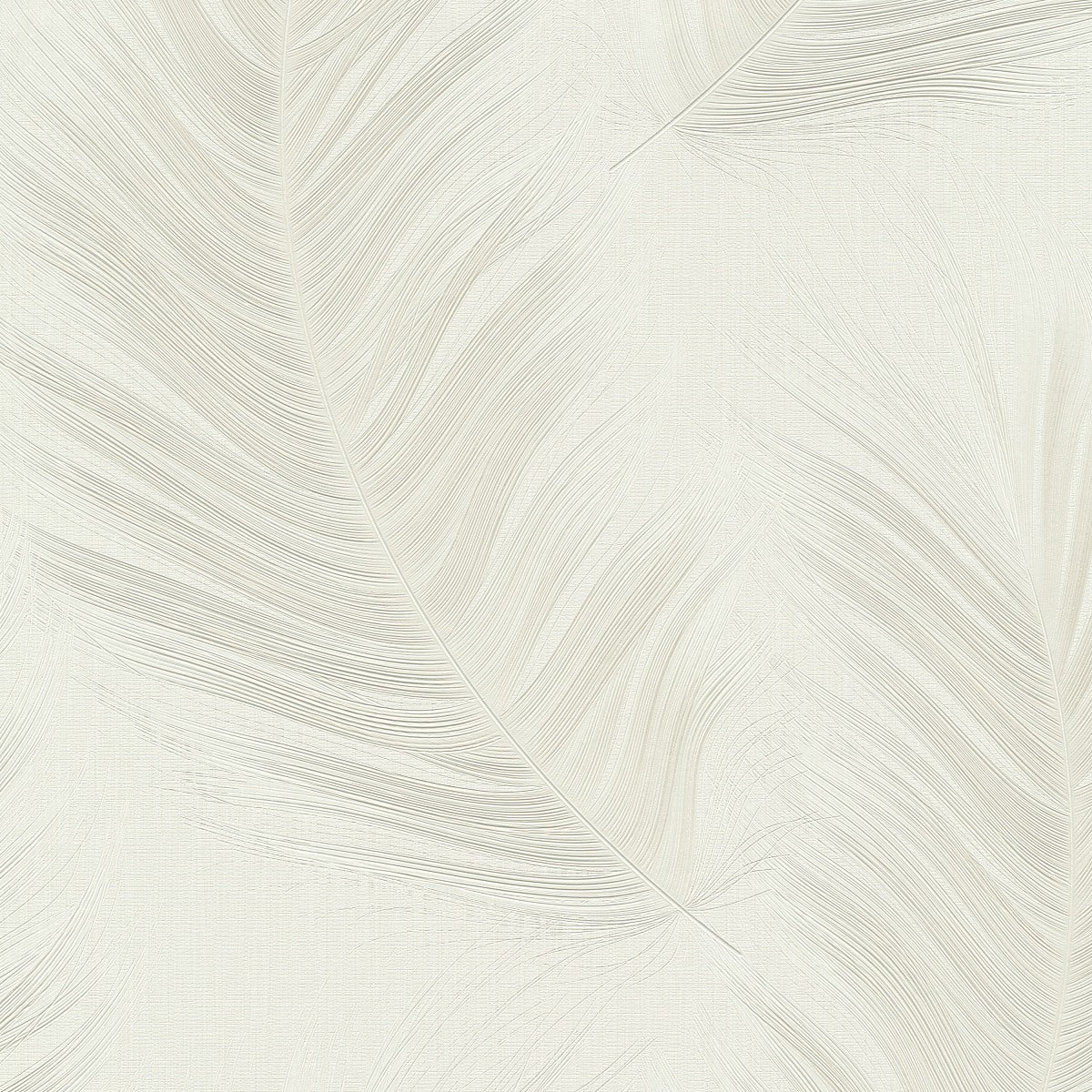 Subtle botanical design. Large leaves in cream shades are elegantly inconspicuous. Texture and gloss highlight the pattern depending on the lighting.