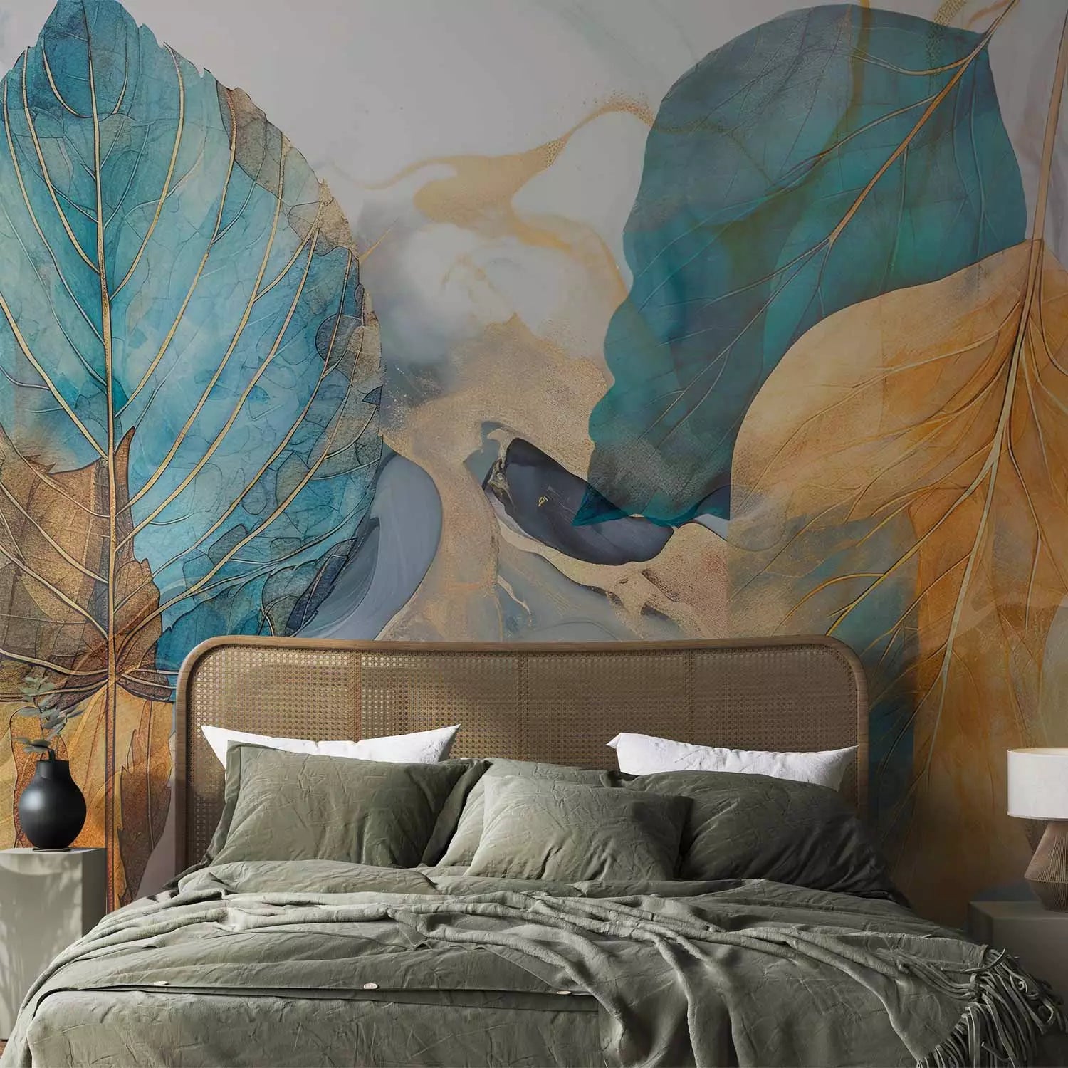 Wall Murals - Orange and turquoise leaves on a hazy background, 151907