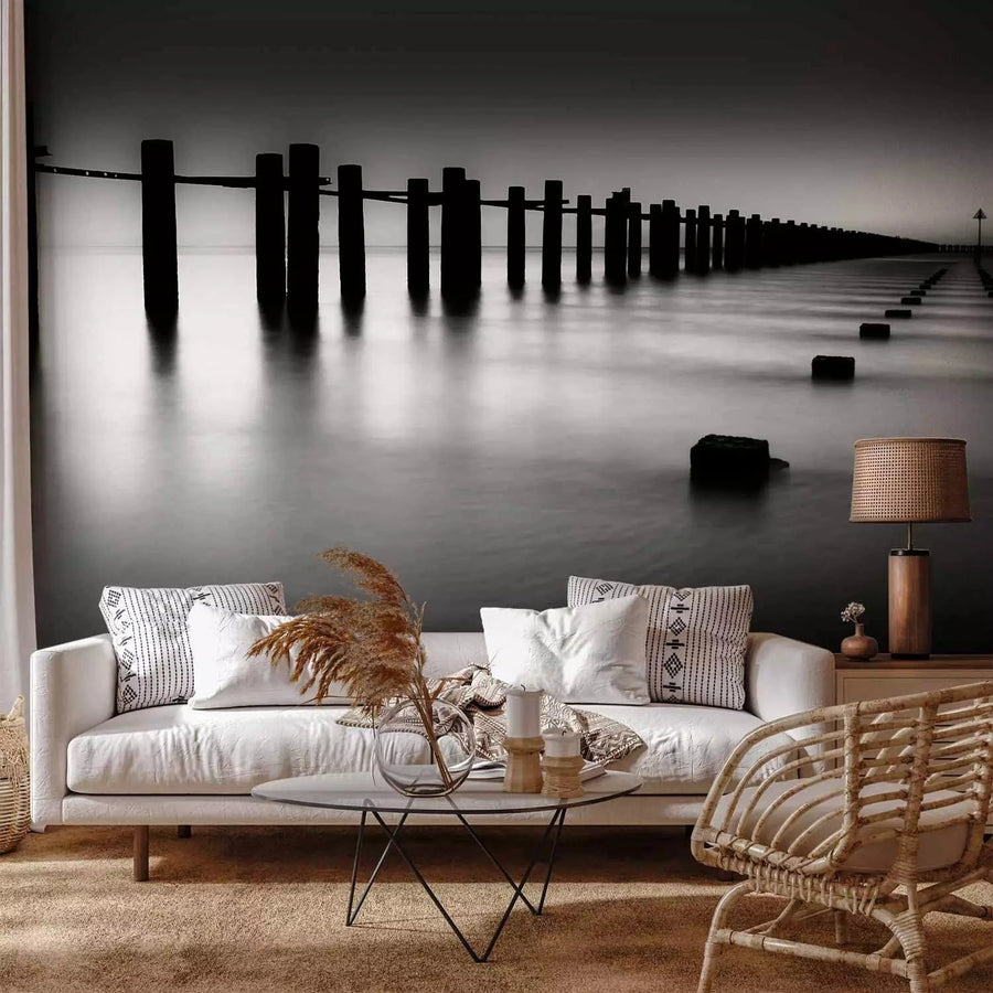 Fototapetes ar jūru - Melnbalta ainava ar mierīgu pludmali - pirkt G-ART