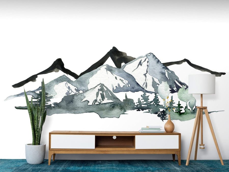 Fototapeet - Minimalistlik mägimaastik halli värvi, 150967