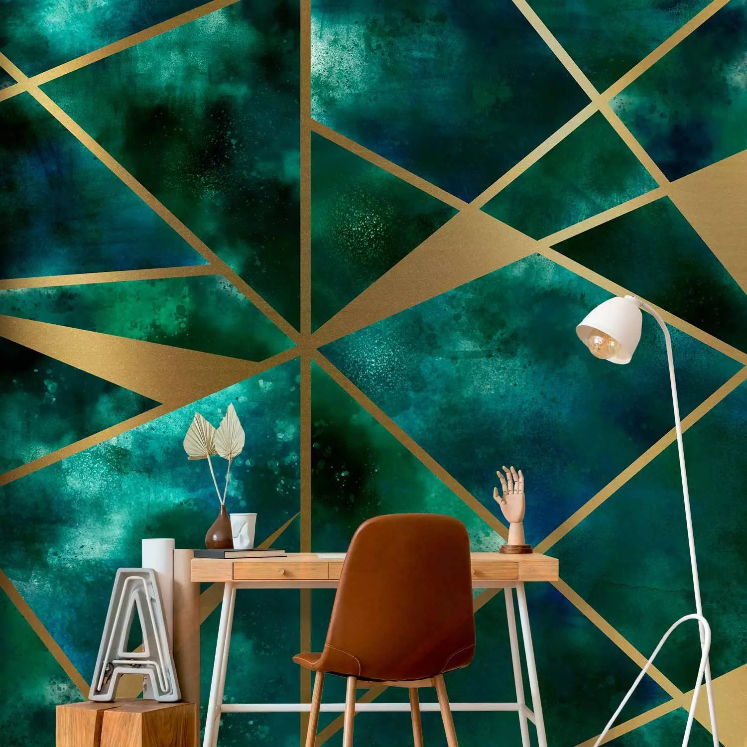 Fototapeet geomeetriliste abstraktsioonidega türkiis ja kuld, 146376