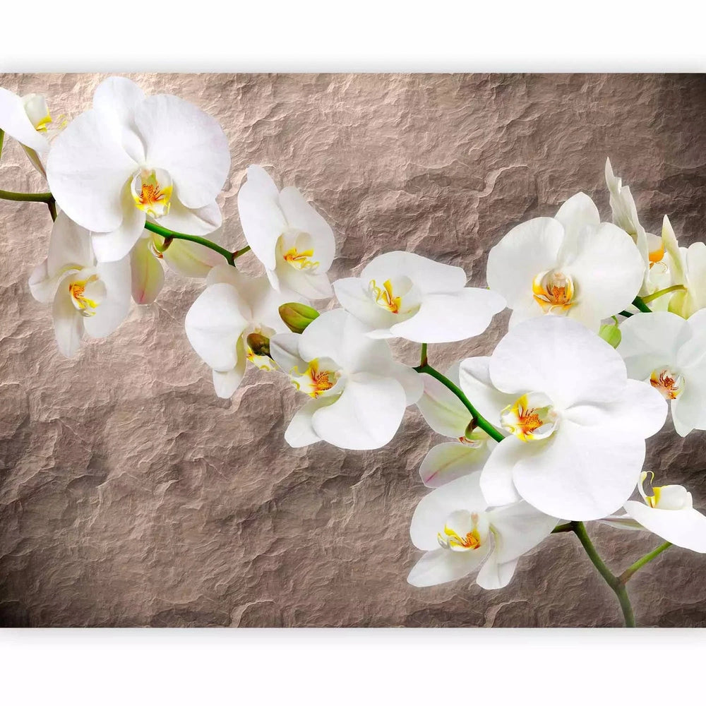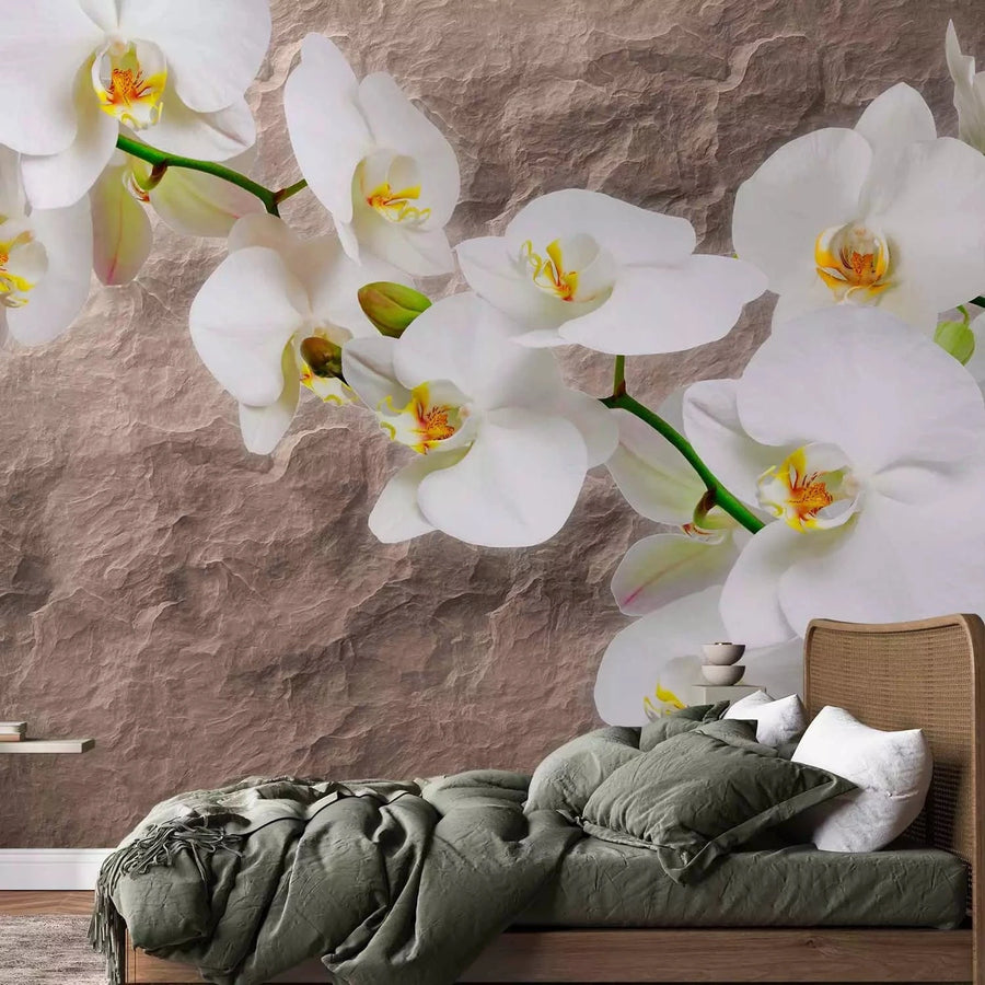 Fototapetes - Orhidejas uz nevienmērīgas faktūras fona, bēša, 60615 G-ART