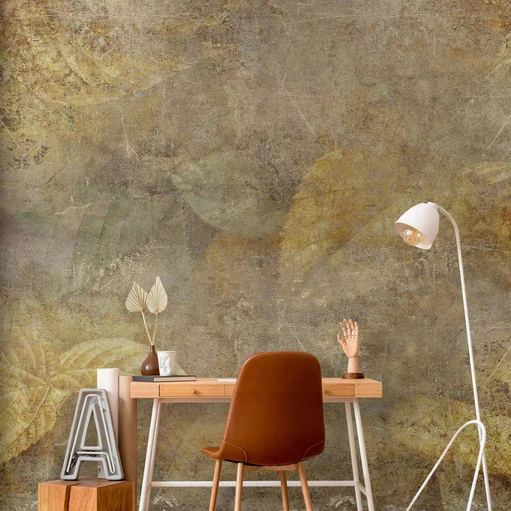 Fototapeet - kuldlehtede kompositsioon betoonist tekstuuri taustal - 135477