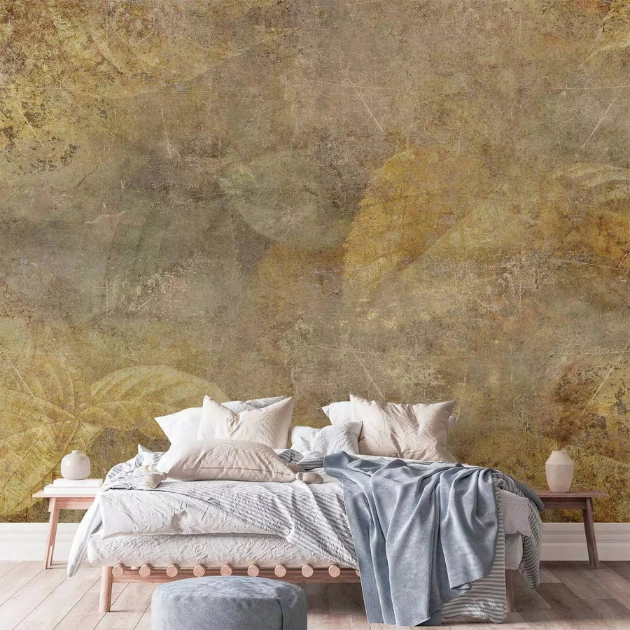 Fototapetes - zelta lapu kompozīcija uz betona tekstūras fona G-ART