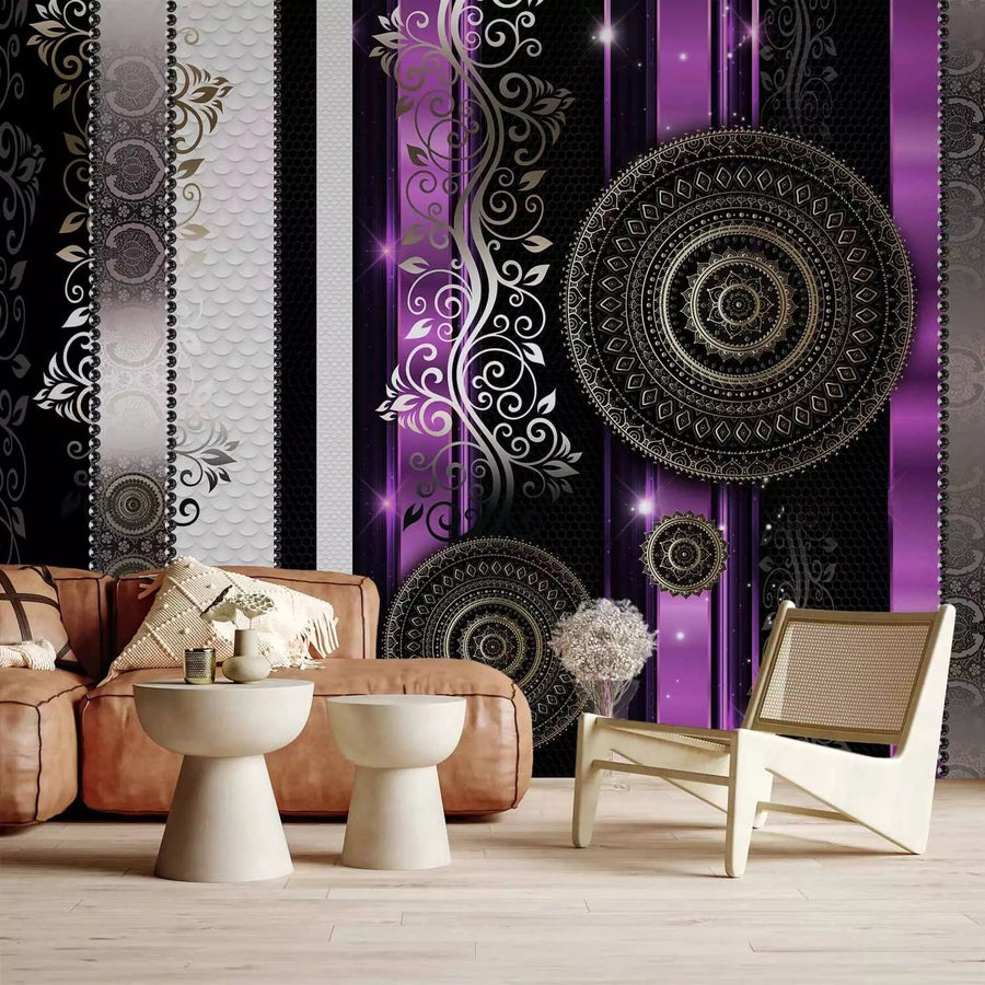 Fototapetes - kompozīcija ar ornamentiem violetā un melnā krāsā G-ART