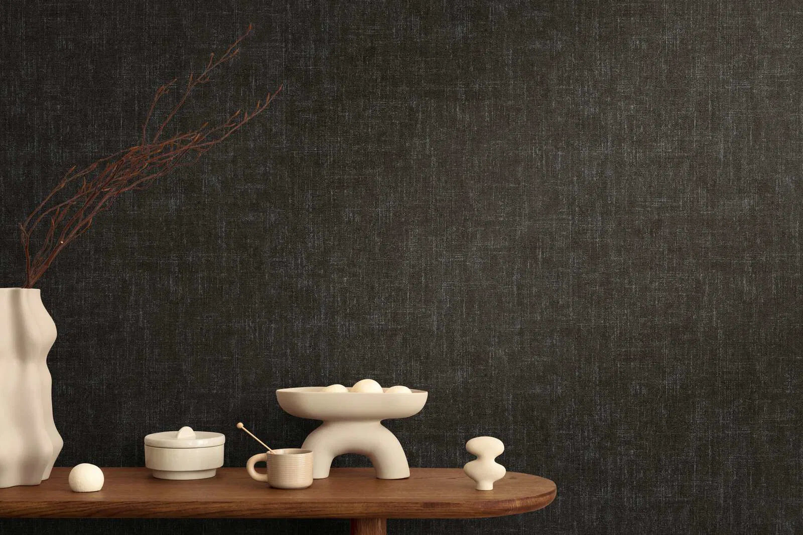 Sellel tapeedil domineerivad tumedad, rikkalikud pruunid toonid, mis loovad tänu tagasihoidlikule värvipaletile rahulikku ja elegantset atmosfääri. Muster meenutab peeneid, ristikujulisi jooni, mis meenutavad linasest tekstuurist või jämedalt kootud tekstiili. Hõbehall helendav toon lõhub kohati tumedat tausta ja loob peene, peaaegu tööstusliku ilme. Kokkuvõttes mõjub kujundus moodsa ja urbanistliku, kuid tänu oma materjalile ka sooja ja hubase välimusega. Peenike muster lisab pinnale sügavust ja tagab, et tapeet näeb tumedast toonist hoolimata elav ja vaheldusrikas välja.