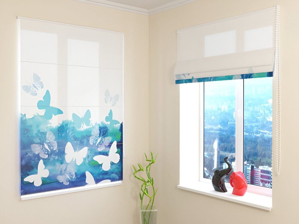 Žalūzijas ar tauriņiem - Abstrakti zili tauriņi - nestandarts izmērs Tapetenshop.lv