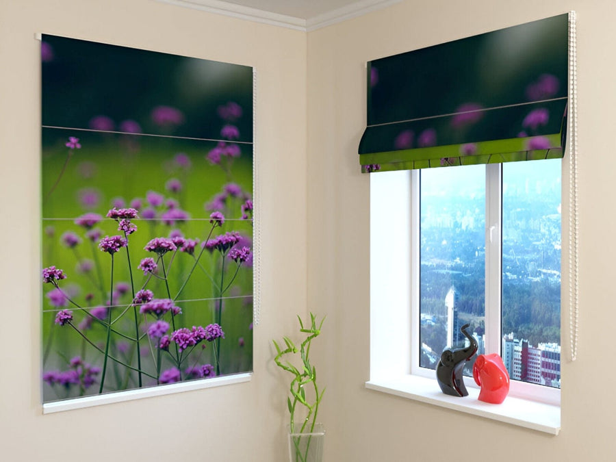 Žalūzijas ar ziedu rakstu - Violeti lauku ziedi - violetā/zaļā krāsā Tapetenshop.lv