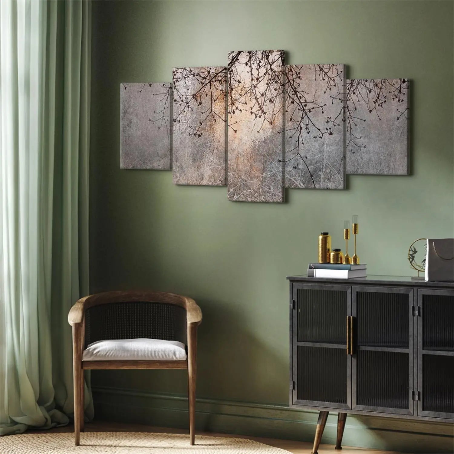Seinapildid - Dekoratiivpuu - peenike oksad hommikuvärvides lilledega, (x5), 151430