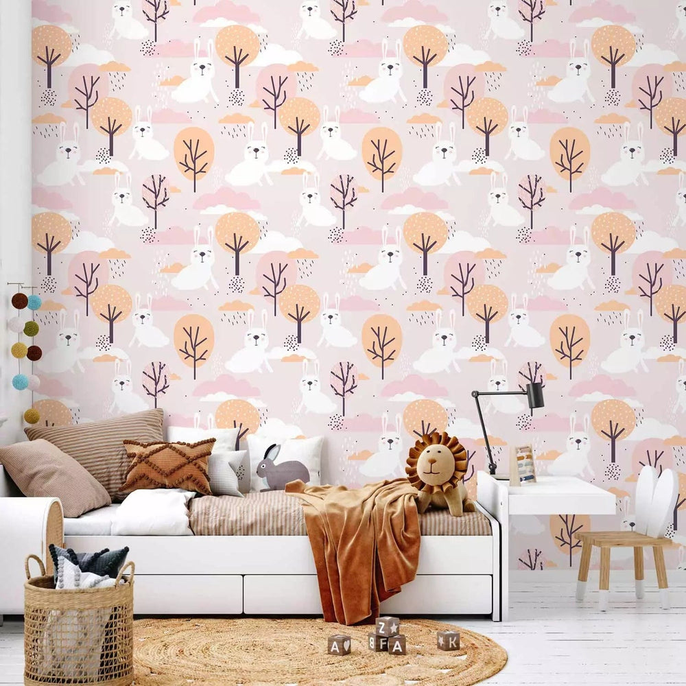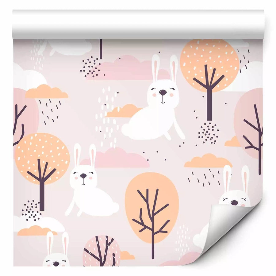Tapetes bērnu istabai - Truši un koki, rozā toņos,  (0,5x10m) G ART