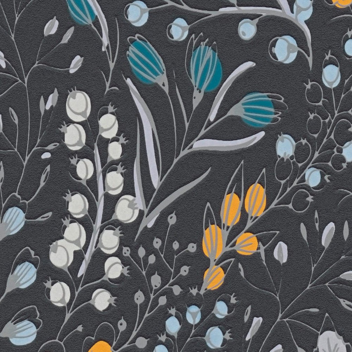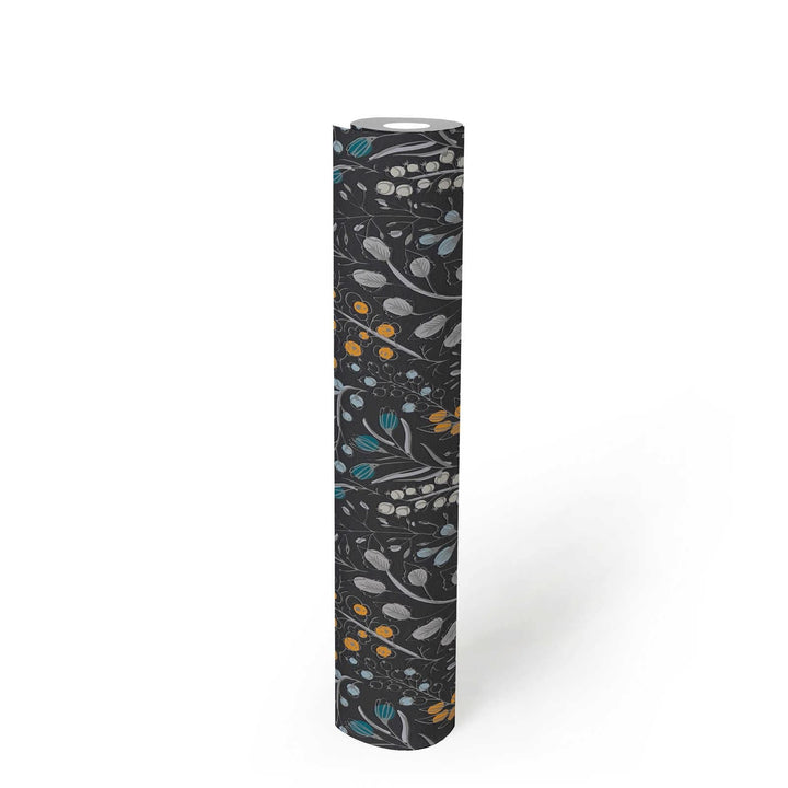 Joonistatud lillemustriga taustapildid: must, kollane, sinine - 1366572