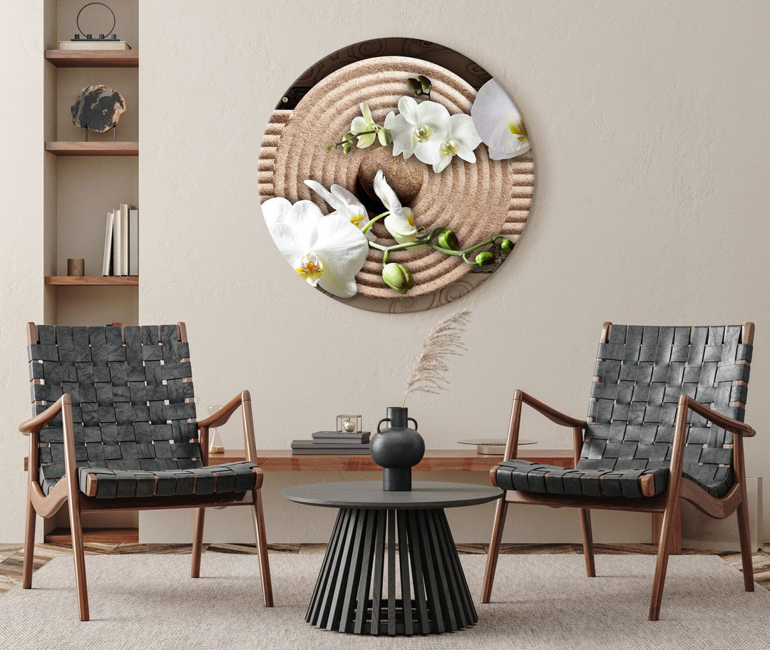 Ümmargune seinapildid (Deluxe) - Jaapani kompositsioon valgete orhideedega liival, 148764