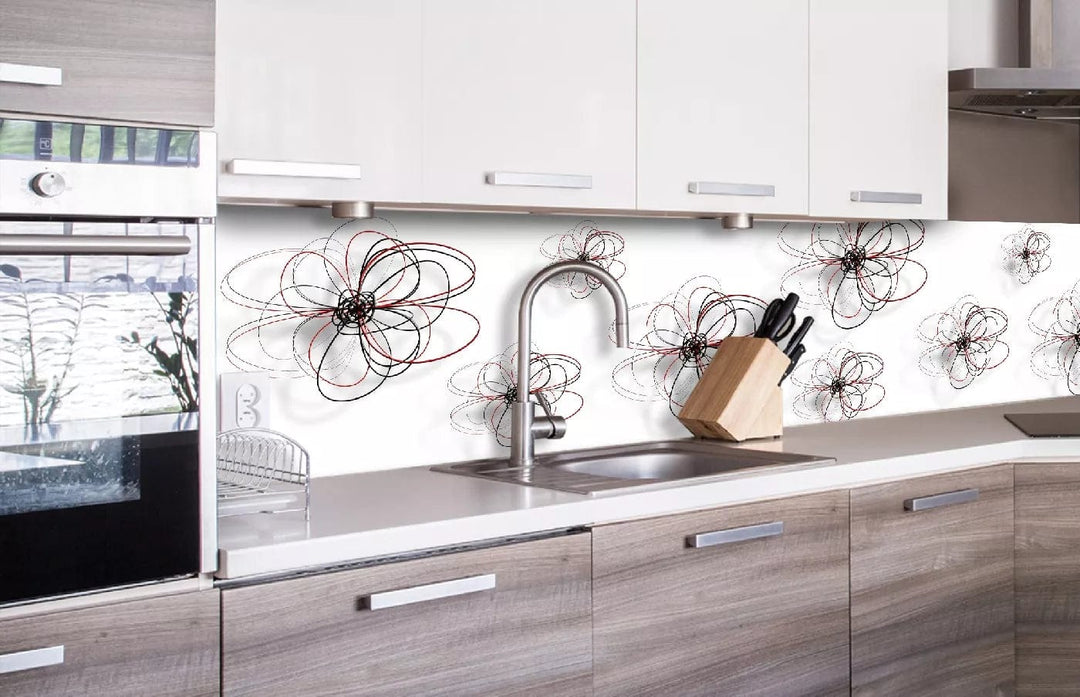 Lamineeritud fototapeet köögi jaoks - Stilizēti ziedi (260x60 cm)