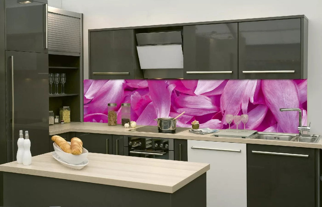 Lamineeritud fototapeet köögi jaoks - Violetās ziedlapiņas (260x60 cm)