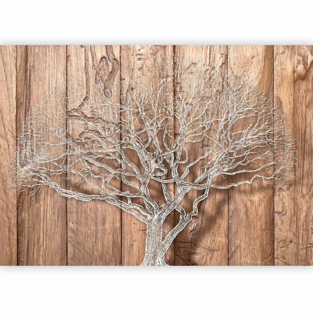 Dabas fototapetes -  koks bez lapām uz brūnu koka dēļu fona, 64626 G-ART