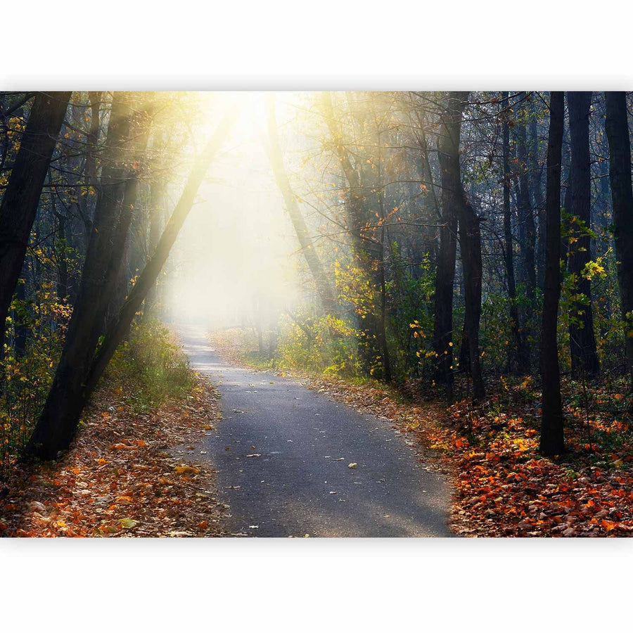 Fototapetes - Ceļš, kas ved cauri rudens mežam, pilnam kritušo lapu G-ART