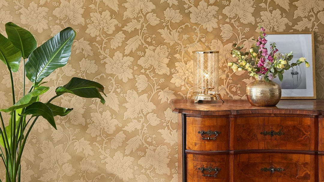 Klassikalises stiilis lillemustriga tapeet, kuldne, RASCH, 2132150