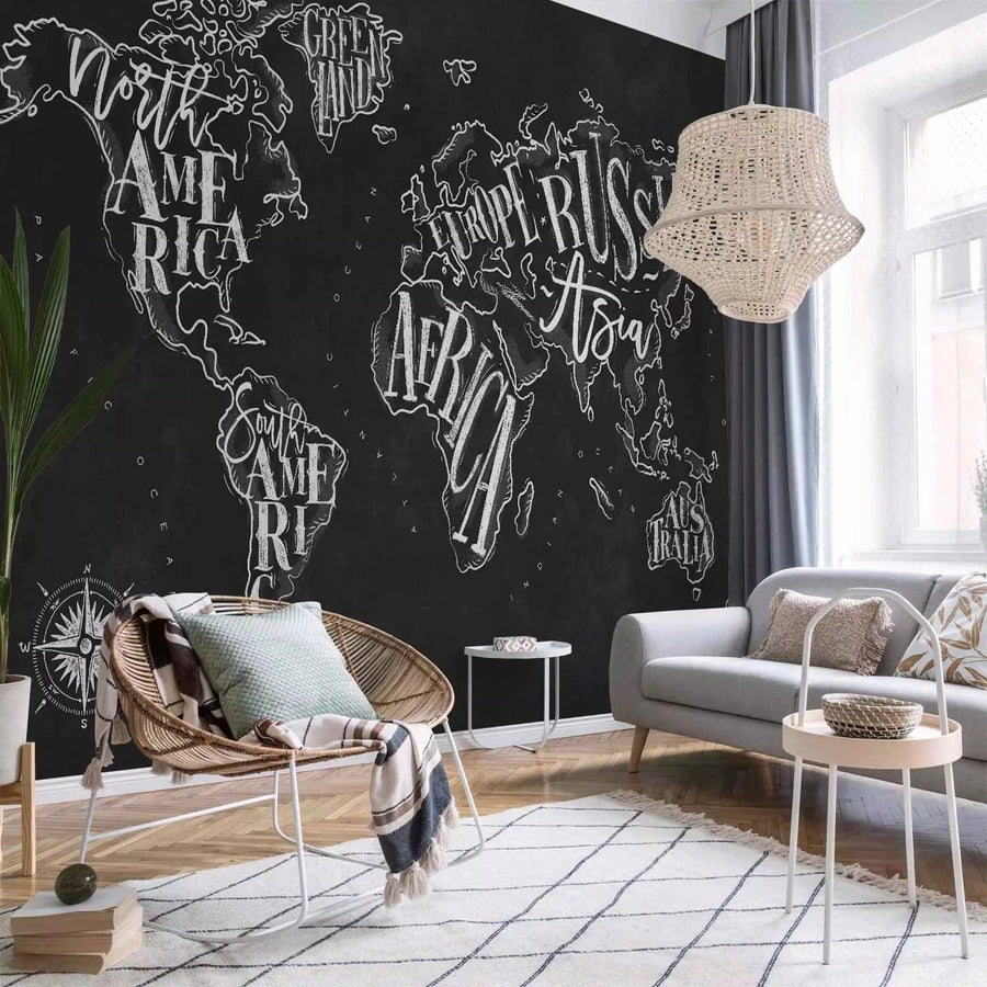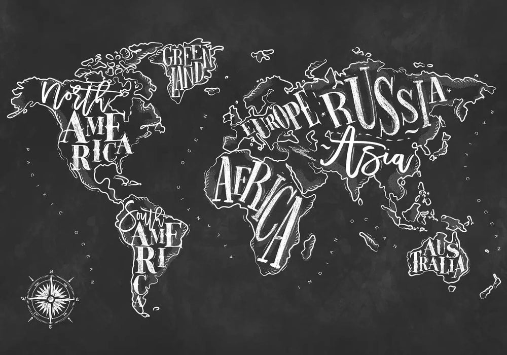 Fototapetes ar pasaules karti - Retro kontinenti (melnā krāsā) G-ART