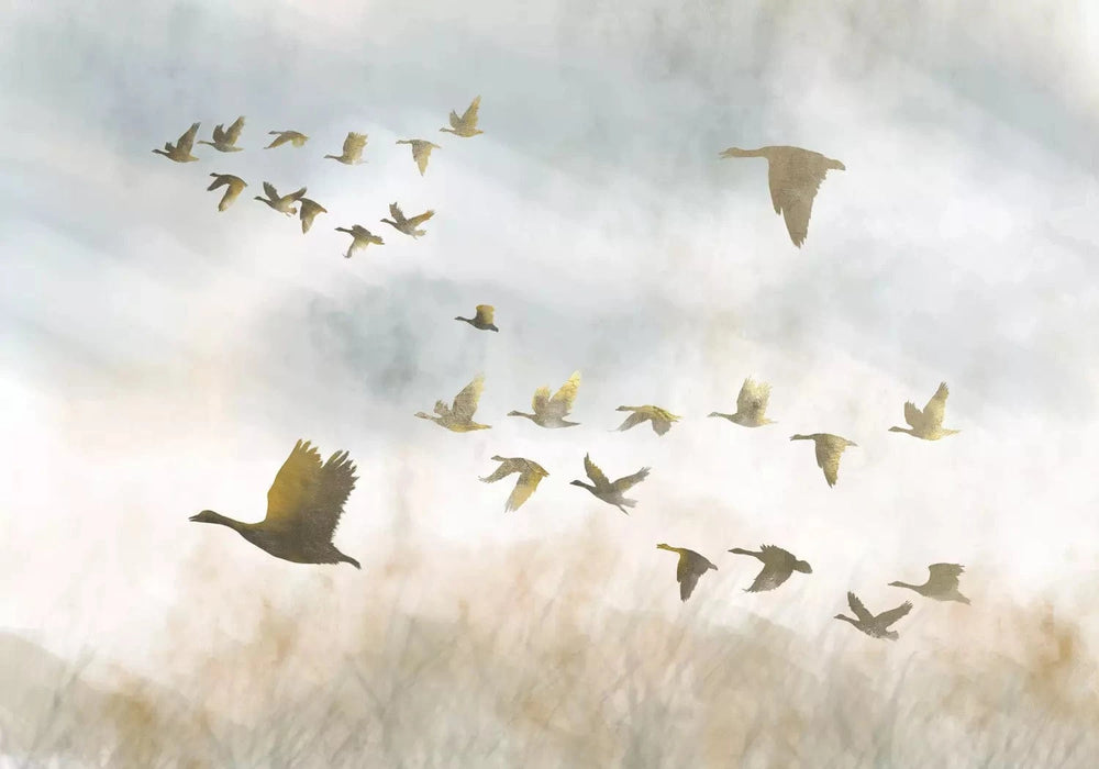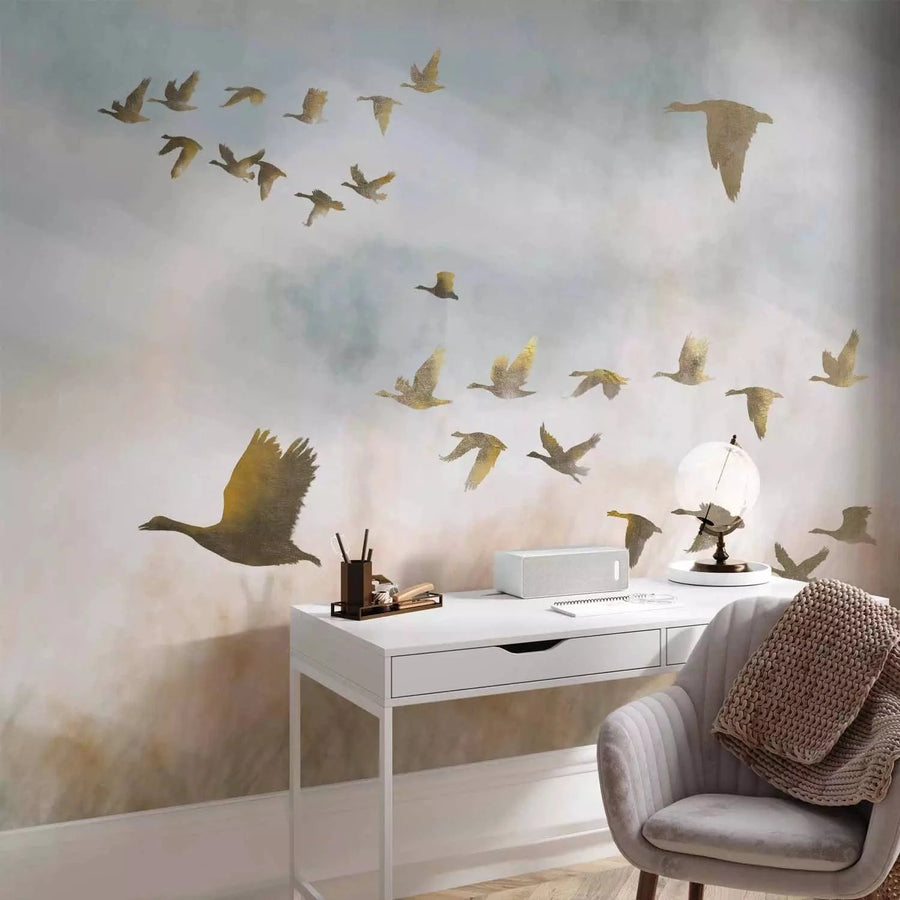 Fototapetes ar vintāžas ziediem - Miglaini ziedi, dzeltena - 143144 G-ART