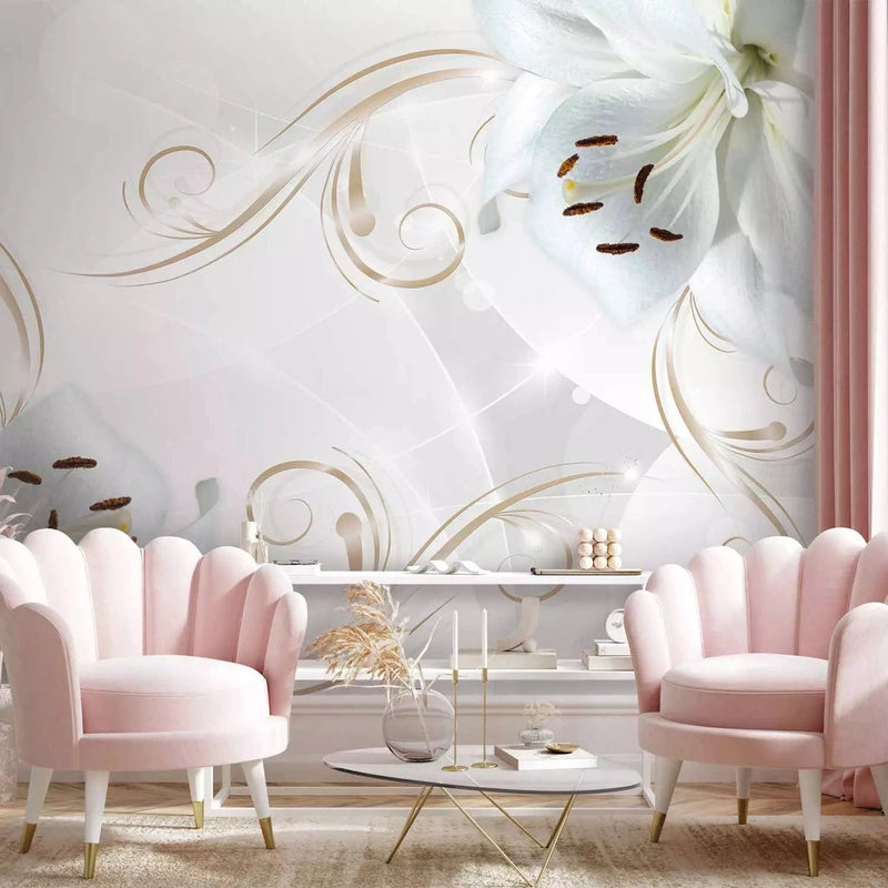 Fototapeet - lilled peenel taustal kuldsete ornamentidega, 97278