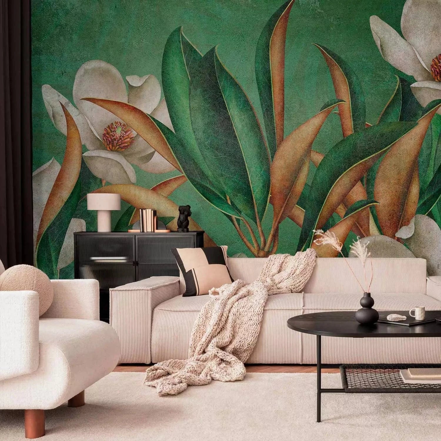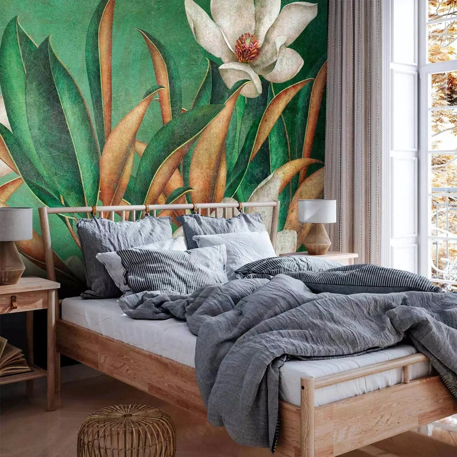 Fototapeet troopiliste lilledega rohelisel taustal, esimene versioon, 143725