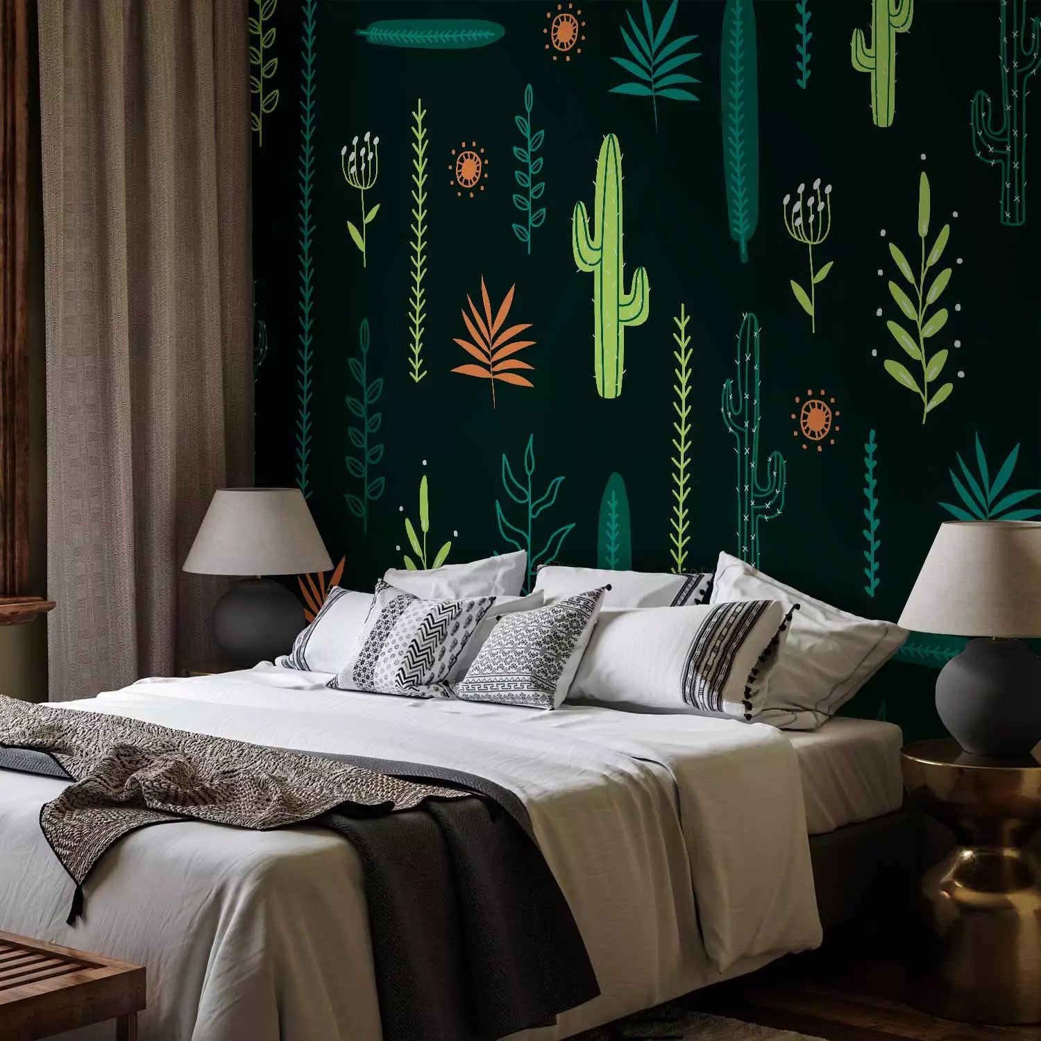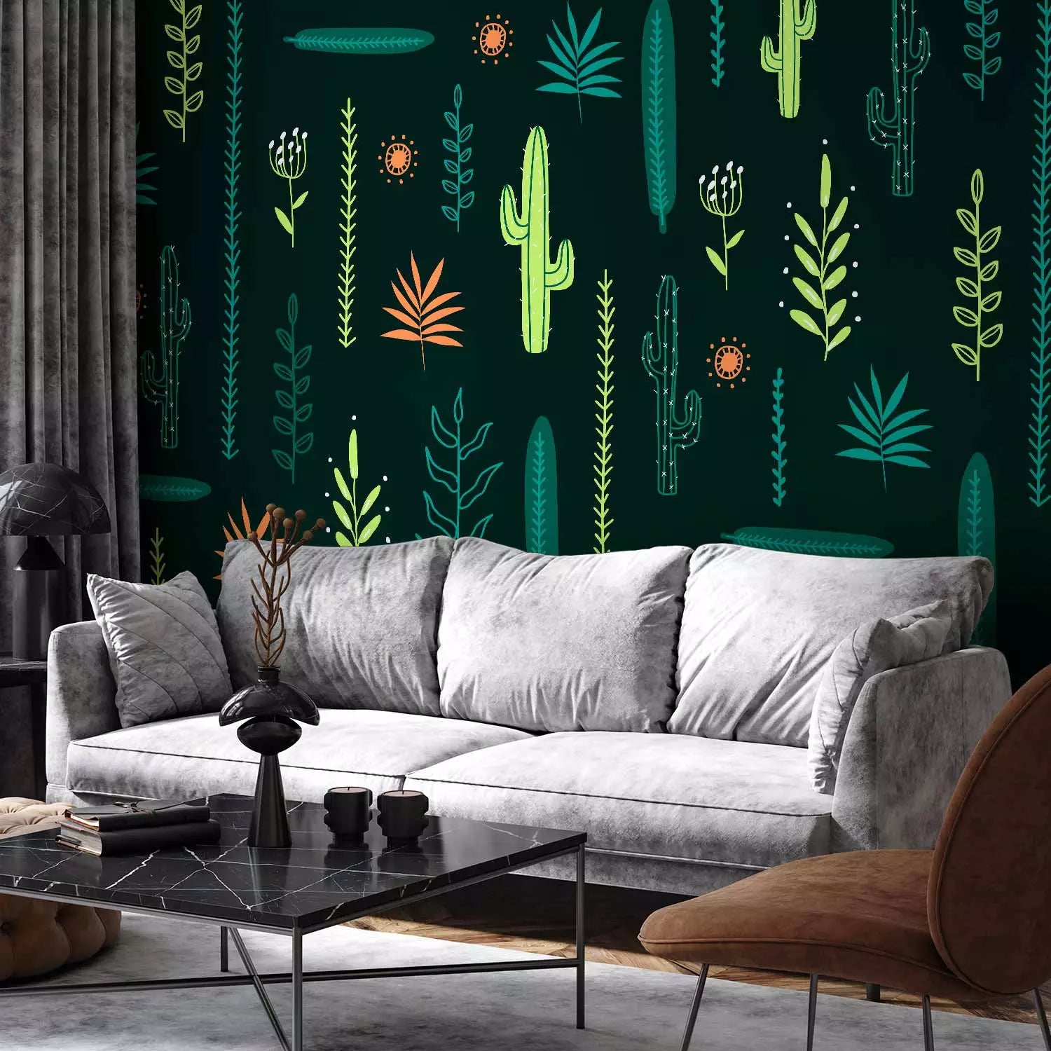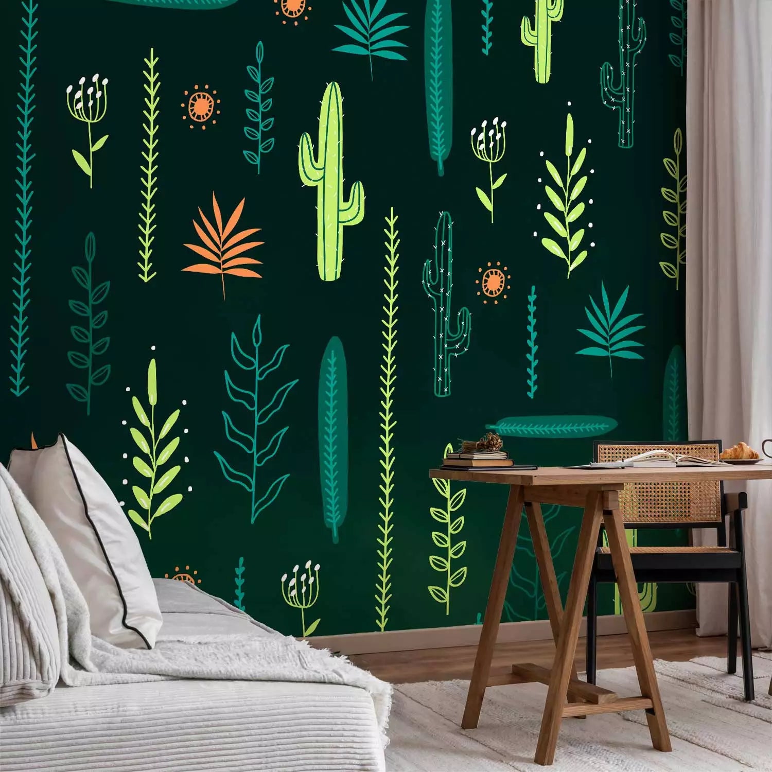 Fototapeet - Lehed ja kaktused rohelisel taustal, 143815