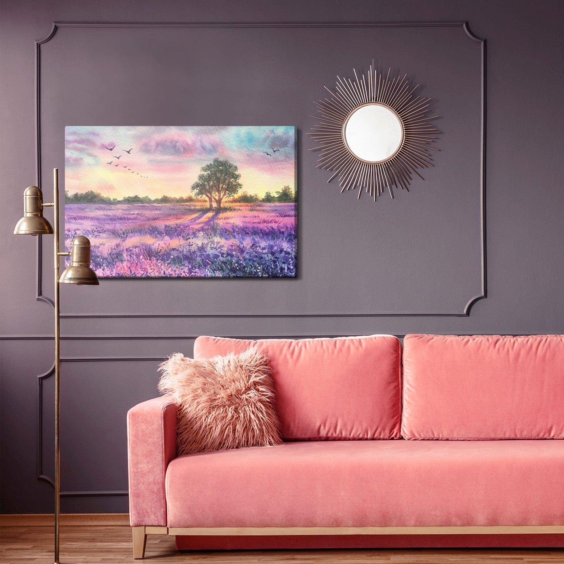 Seinapildid - Lavendli maastik, maalitud akvarellidega, N-1499