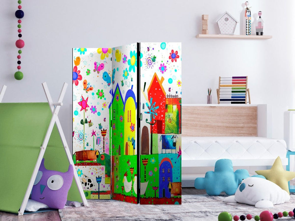 Kolmipaneelinen Tilanjakaja 135 x 172 cm (leveys x korkeus). Kunkin paneelin koko : 45 x 172 cm. Puukehys 1,5 cm paksu. Tilanjakaja Päällystetty kuitukankaalla, tiheys 188 g/m². Paino: 5,7 kg. Huoneenjakaja on käyttövalmis ilman lisäkokoonpanoa. Painettu molemmin puolin.