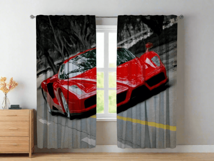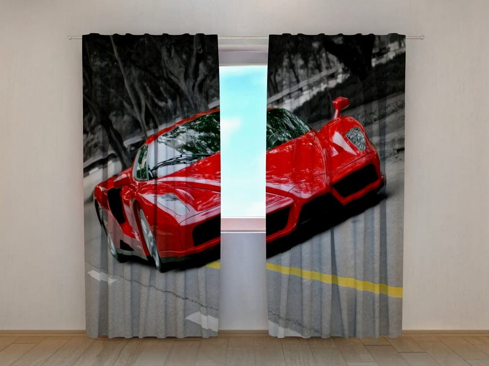 Aizkari bērnu istabai - Spilgts attēls - Sarkans ferarri Tapetenshop.lv