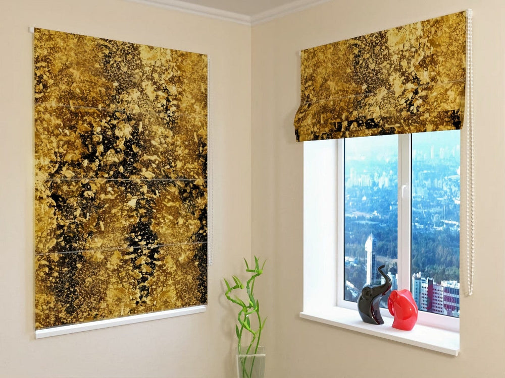 Romiešu žalūzijas ar abstrakta rakstu - Zelta pārslas uz melnā Tapetenshop.lv