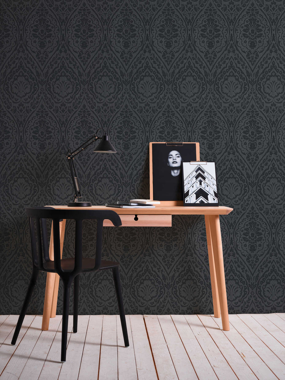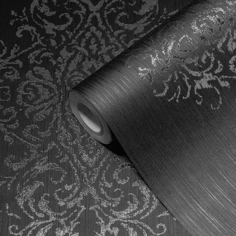 Tekstiilit Tapetit hopeisella koristeella tummanharmaalla pohjalla