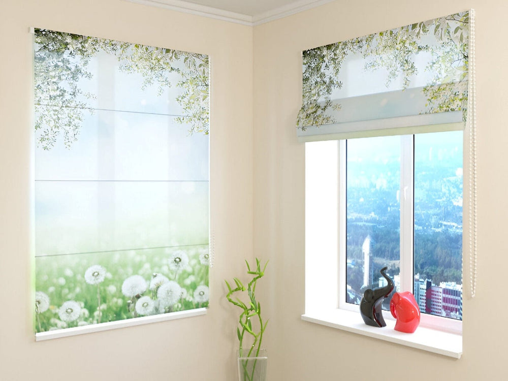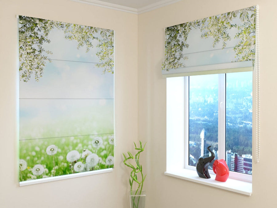 Žalūzijas ar ziediem - Baltās pienenes - Aptumšošanas efekts Tapetenshop.lv