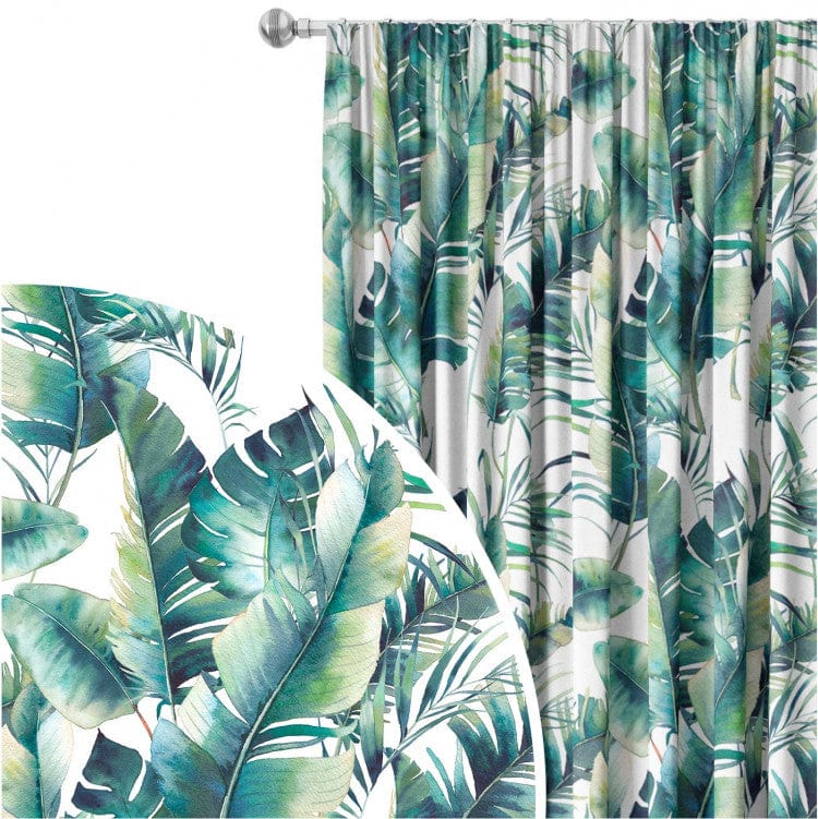 Koristeelliset verhot - Trooppinen kasvisto akvarellityylillä valkoisella pohjalla, 147679
